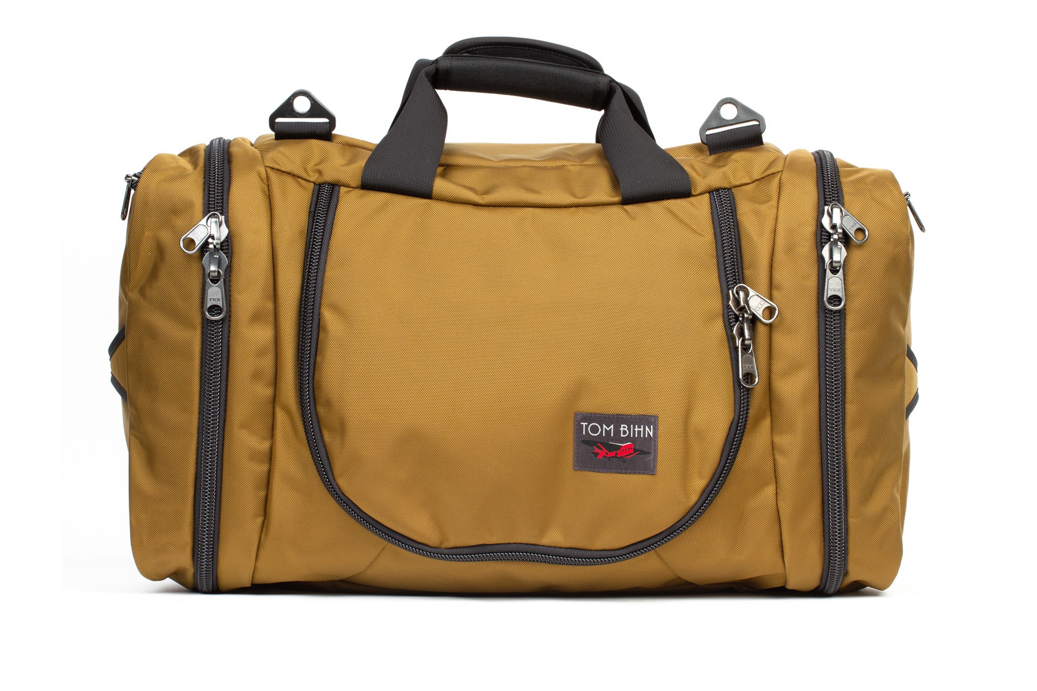 The Aeronaut can be carried on the back via its Edgeless backpack straps (which can tuck away when not in use), on the shoulder or cross-body with the optional Absolute Shoulder Strap, or by hand duffel-style with the padded handle handle.