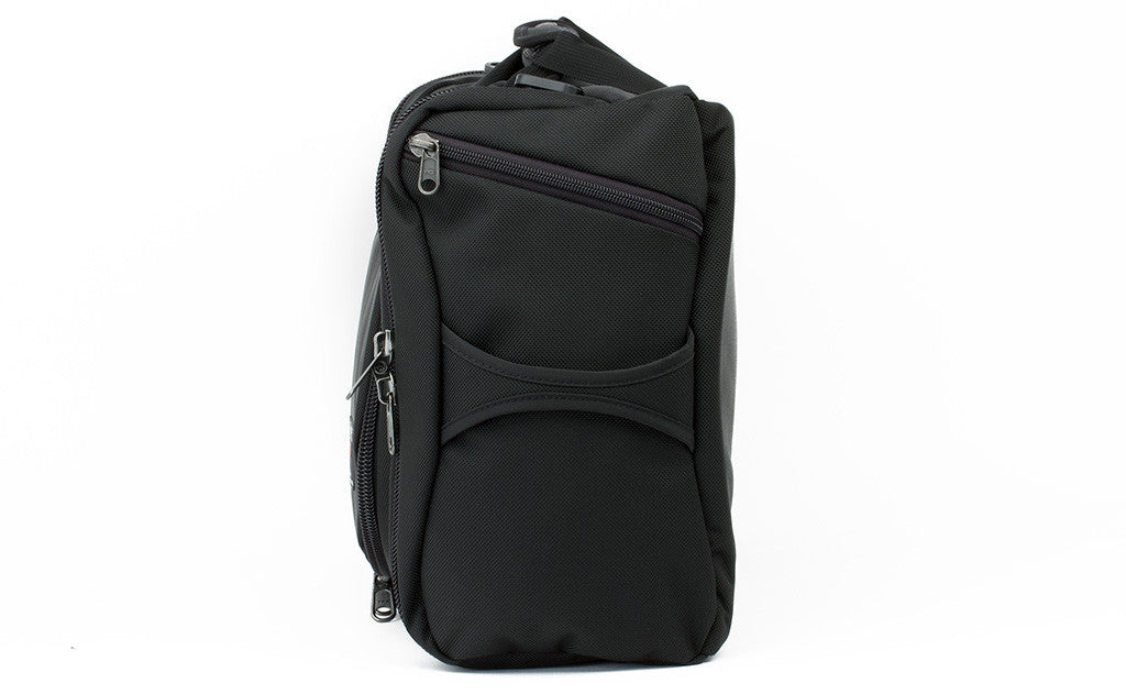 • Zippered partitions allowing you to push into the side pockets' space and expand the main pocket as needed or keep the pockets neatly divided