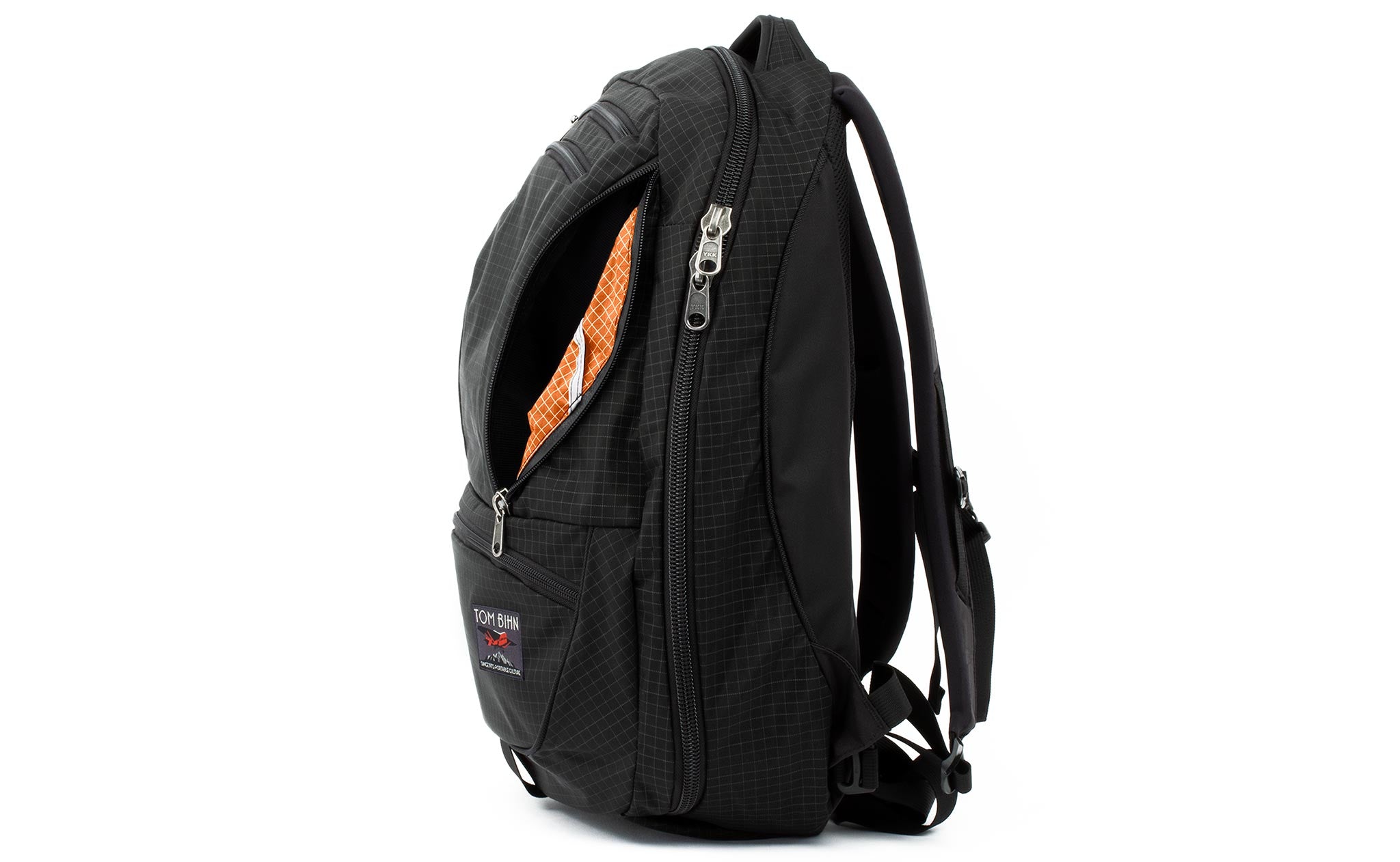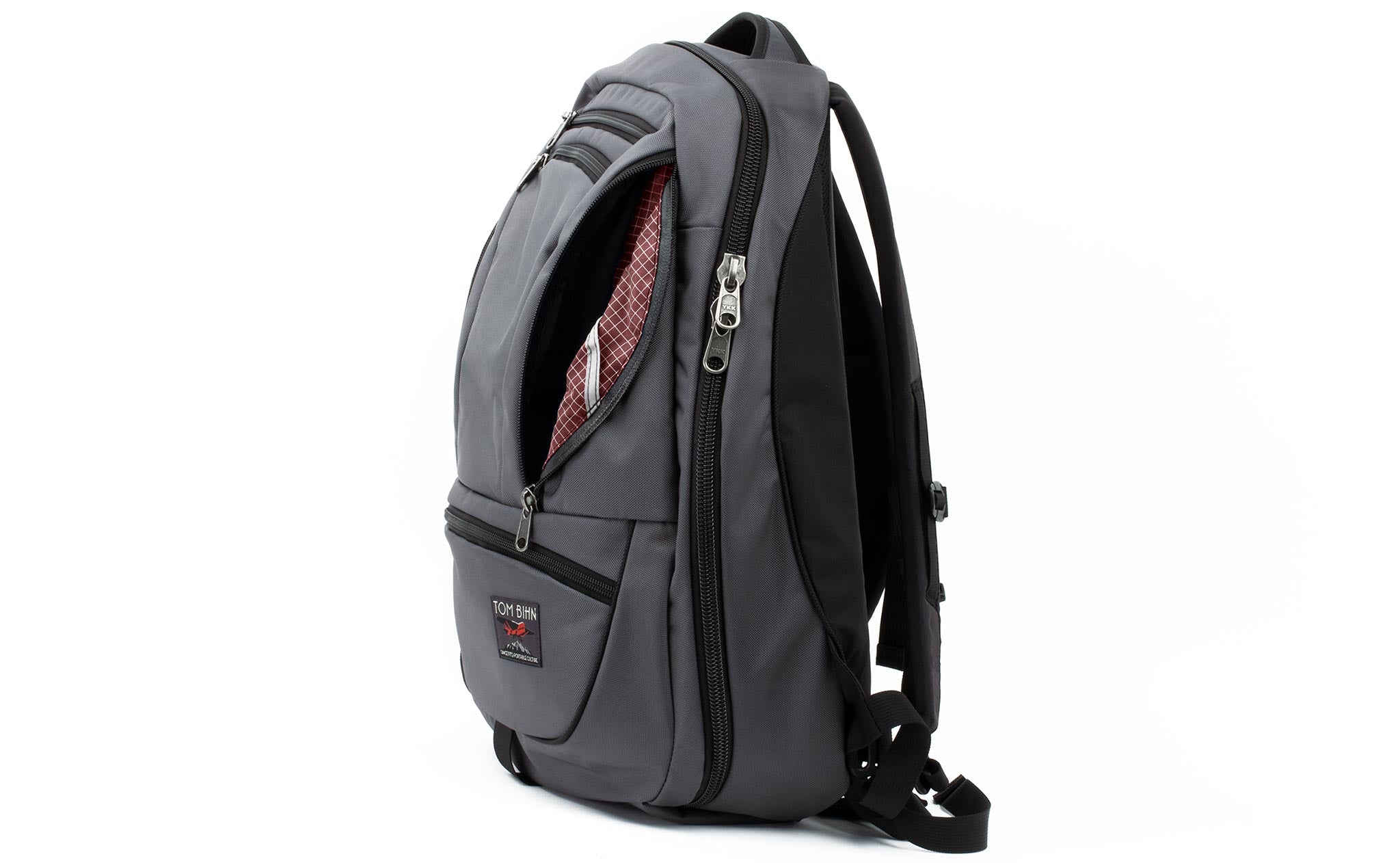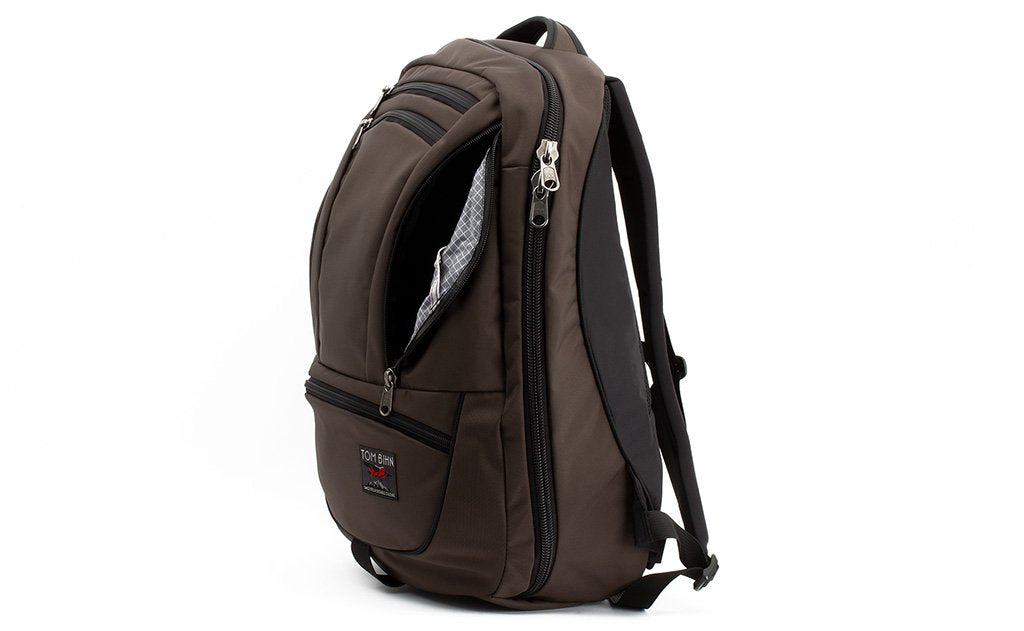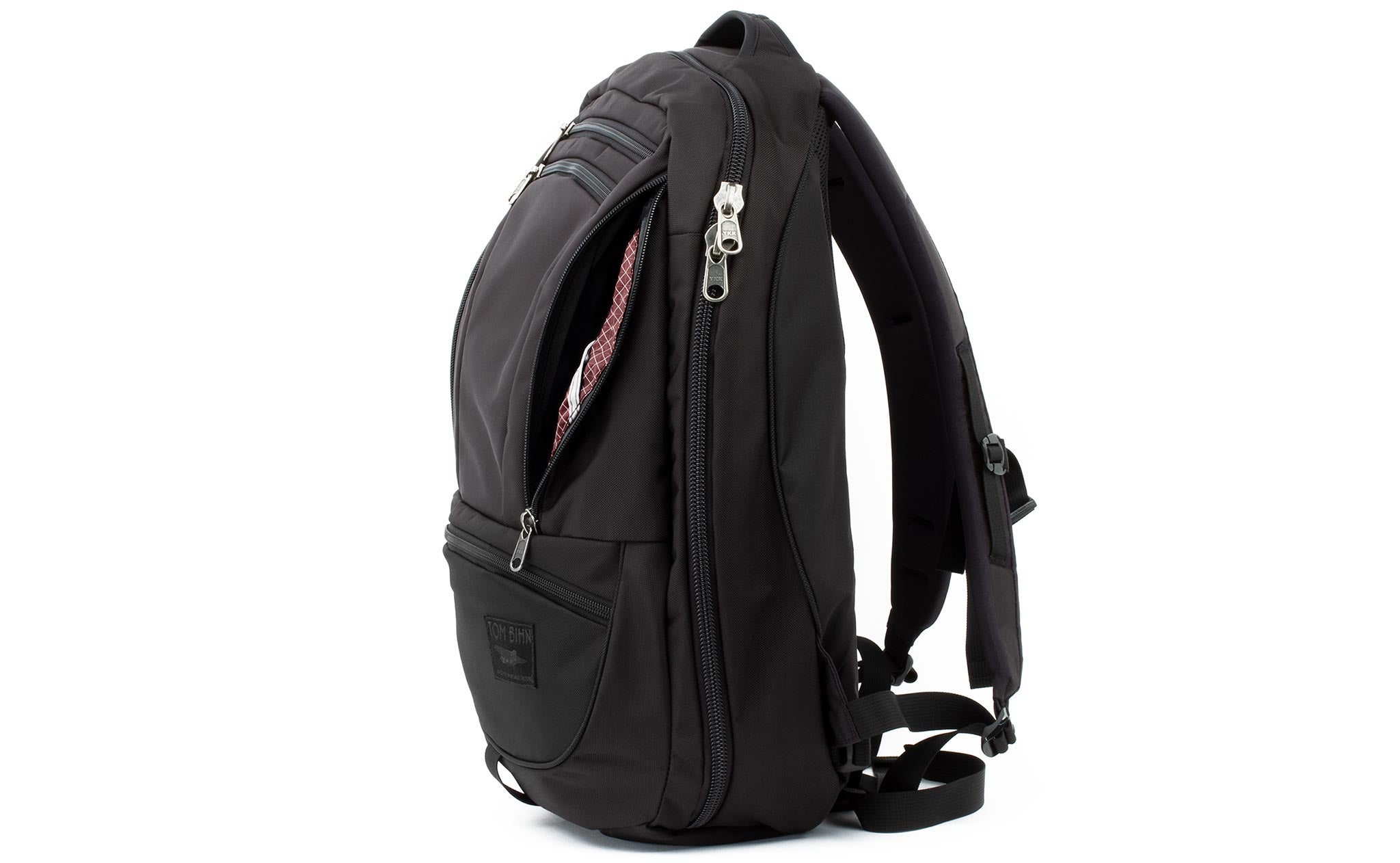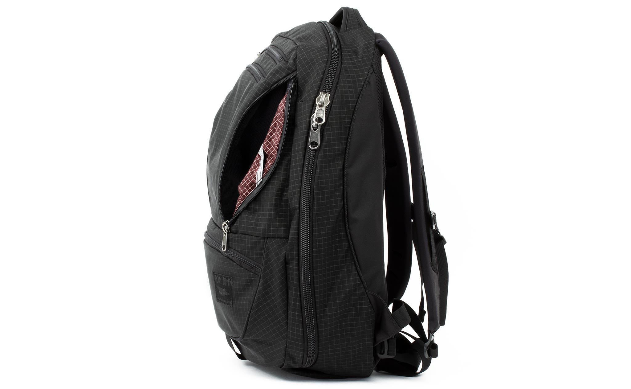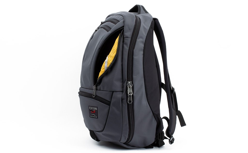 The biggest change we made between the Synapse and the Synik is the opening of the main compartment. The Synik can open fully clamshell — the zipper starts at the bottom edge of the bag, rather than the middle, so you can pack your bag like a suitcase.