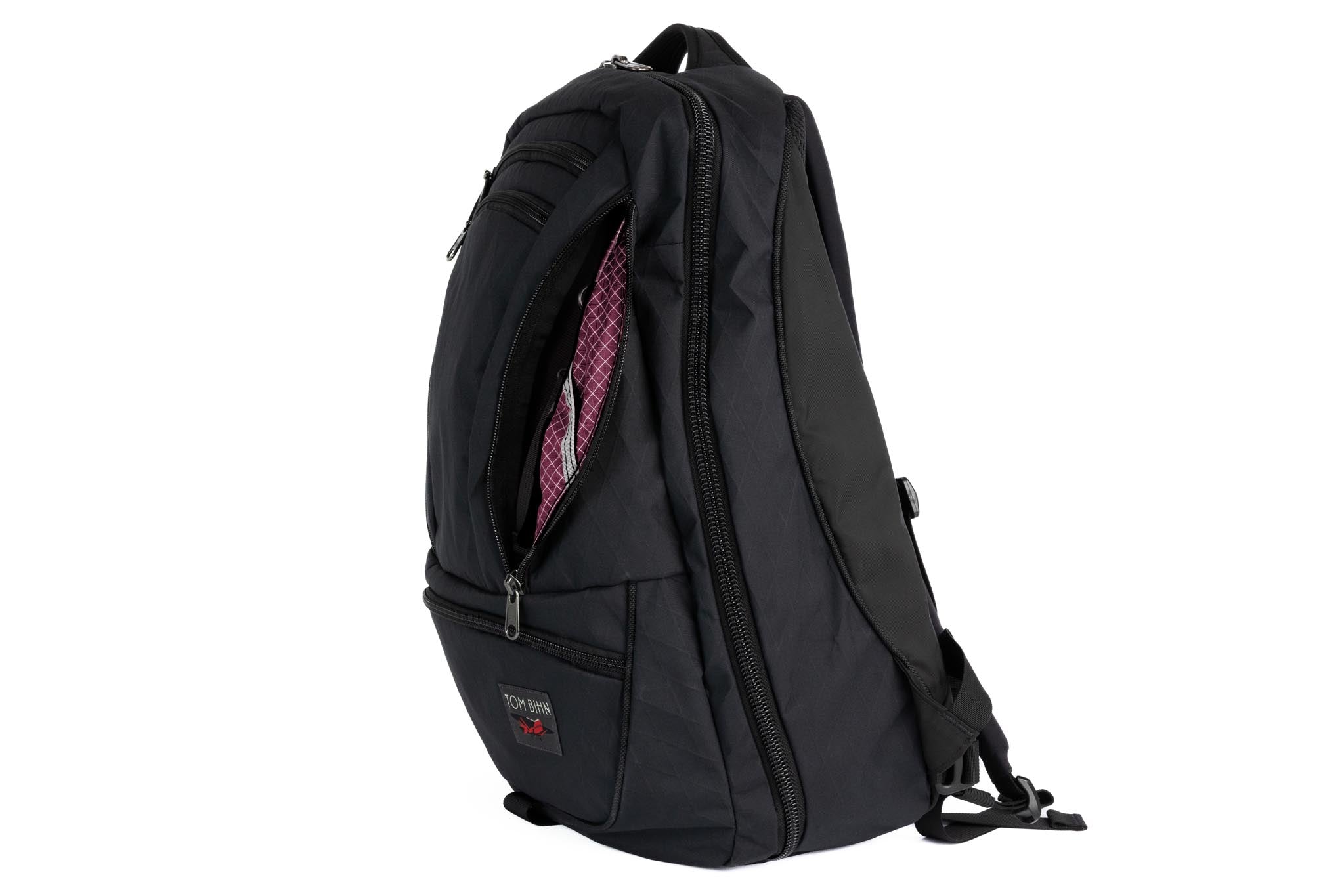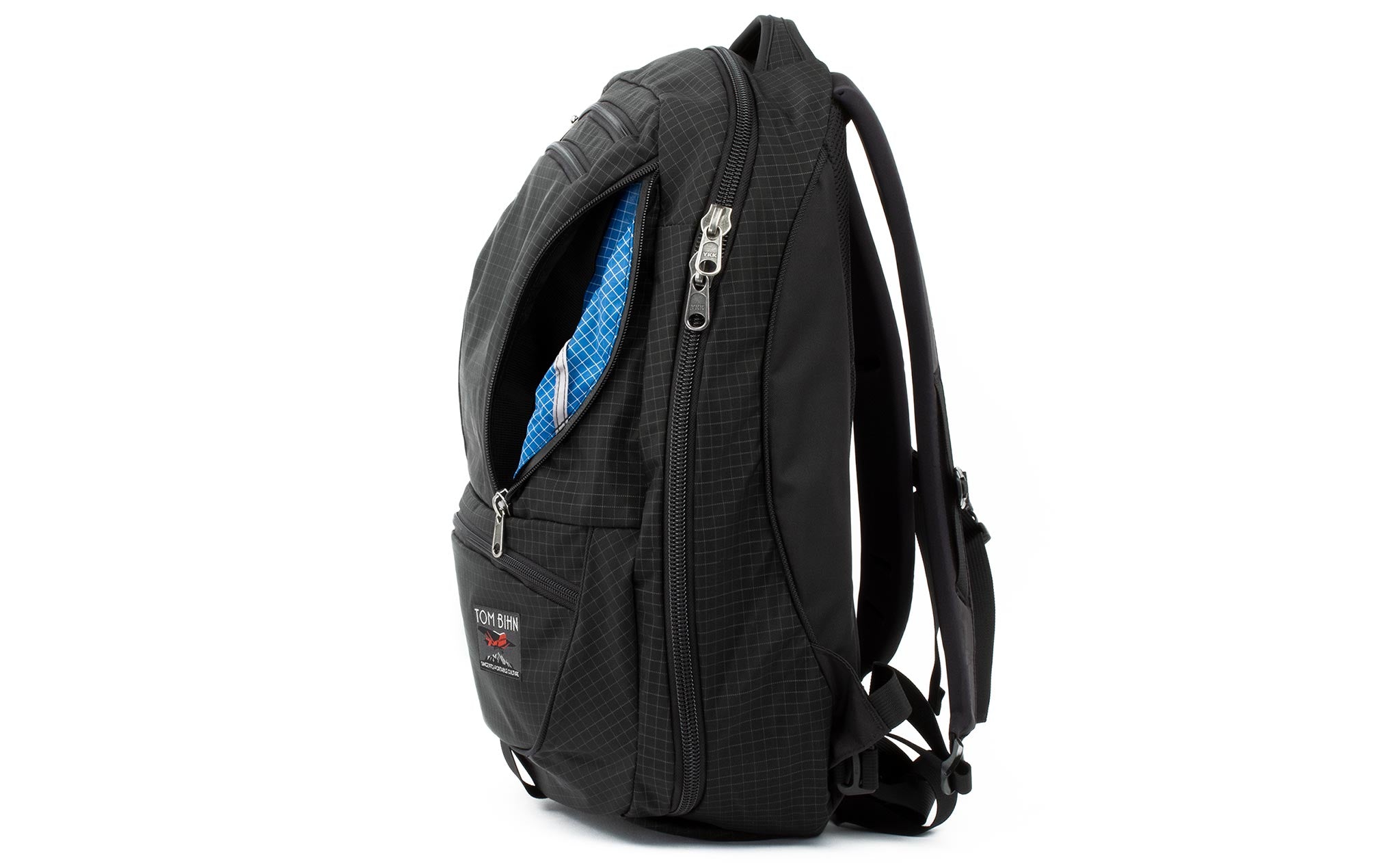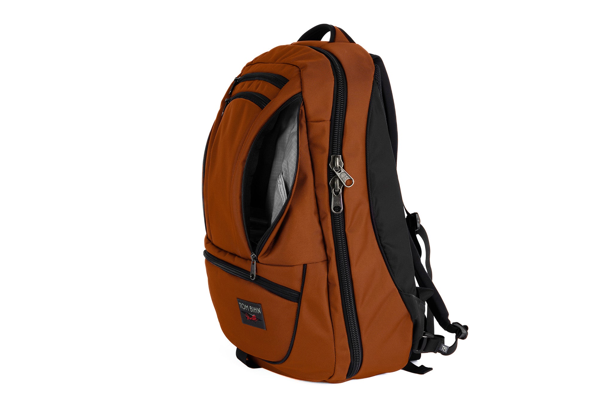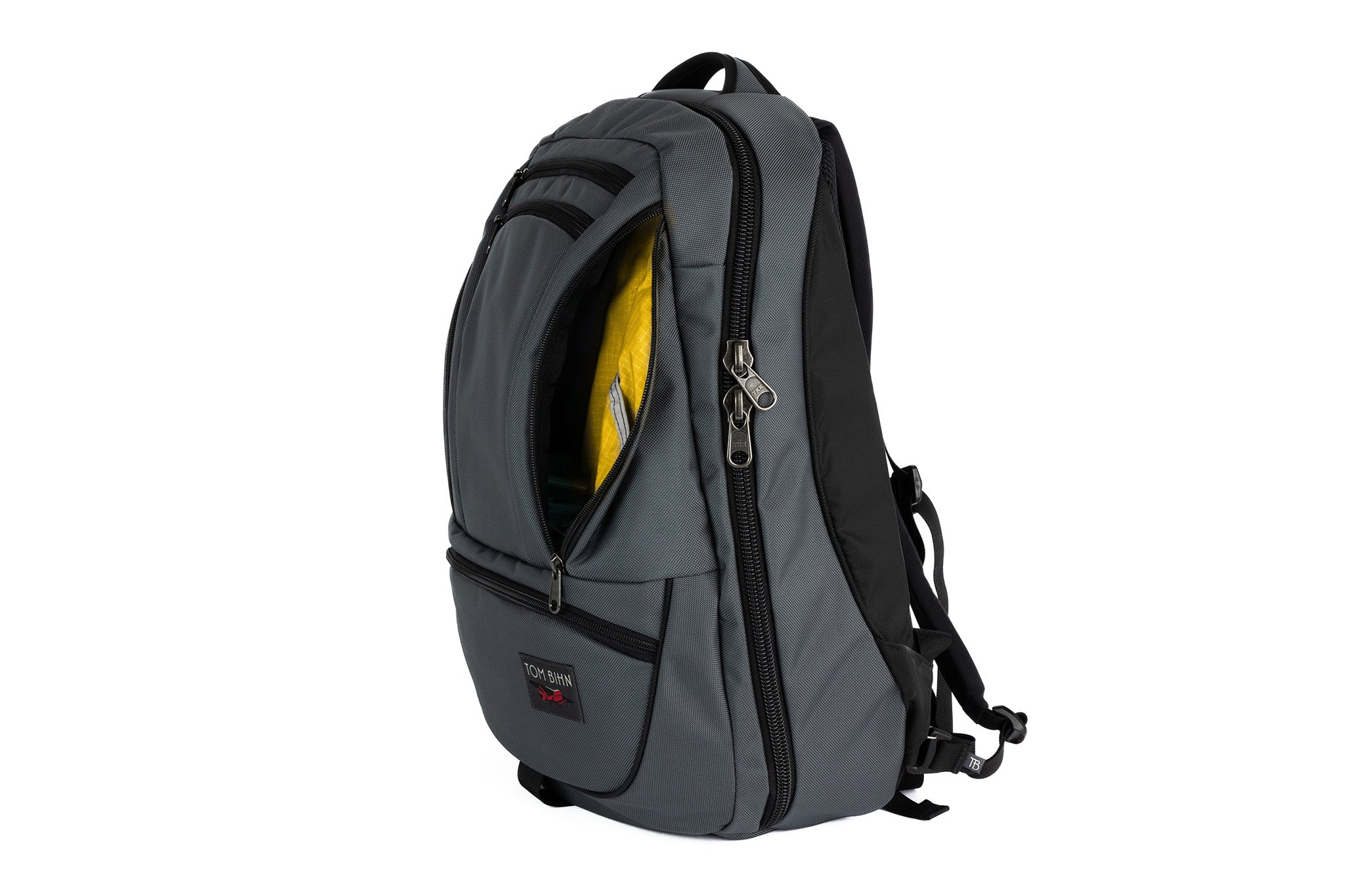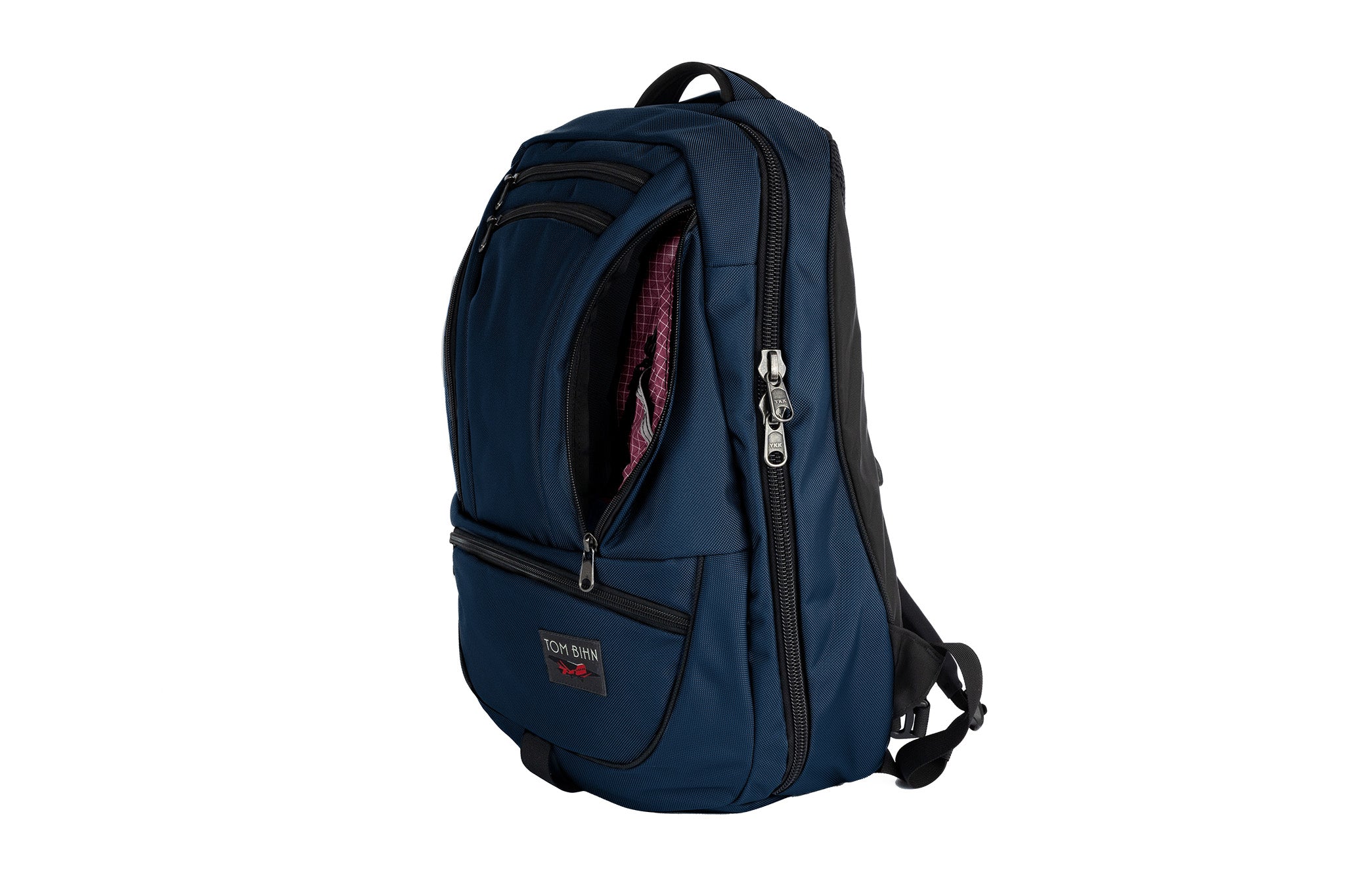 The biggest change we made between the Synapse and the Synik is the opening of the main compartment. The Synik can open fully clamshell — the zipper starts at the bottom edge of the bag, rather than the middle, so you can pack your bag like a suitcase.