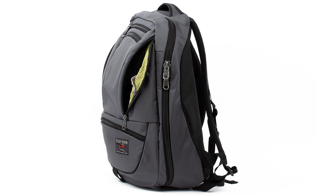 If you are using your Synik for daily use and don't need to fully unzip the clamshell each time, know that you can also unzip the main compartment halfway and pack it like the Synapse or any front-loading backpack. The #10 YKK Aquaguard zippers that we use have enough resistance to keep the main compartment in place when it is opened just halfway. We've test-packed the Synik to its maximum to see if that would unintentionally force the clamshell open, and rest assured, it did not.
